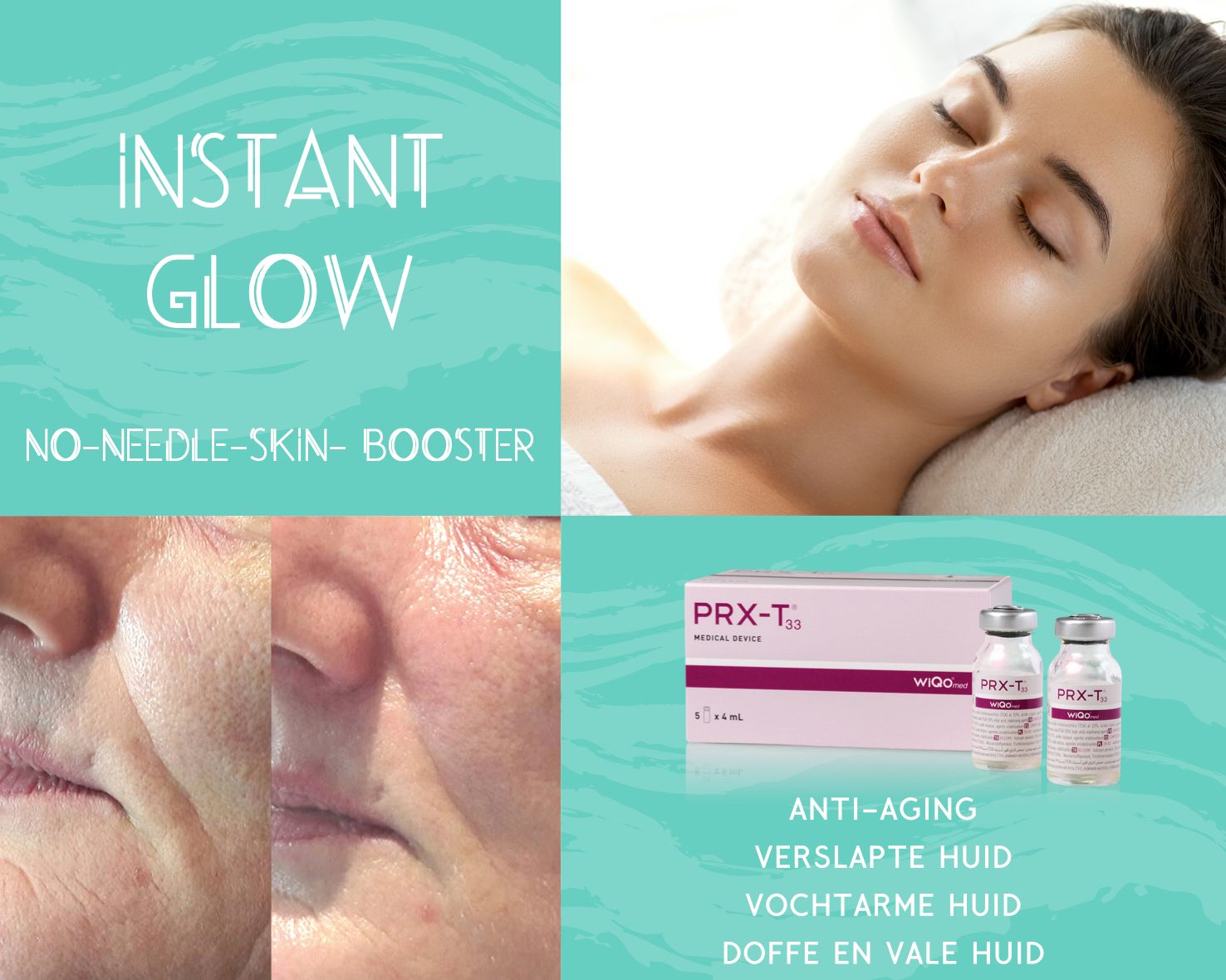 Met de PRX-T33 No Needle Skin Booster heeft u onmiddellijk een zichtbaar effect. Het optimale resultaat wordt bereikt na 3 tot 5 behandelingen. Na iedere behandeling verbetert het uiterlijk van de huid. Dit effect stabiliseert voor 6 tot 8 maanden.